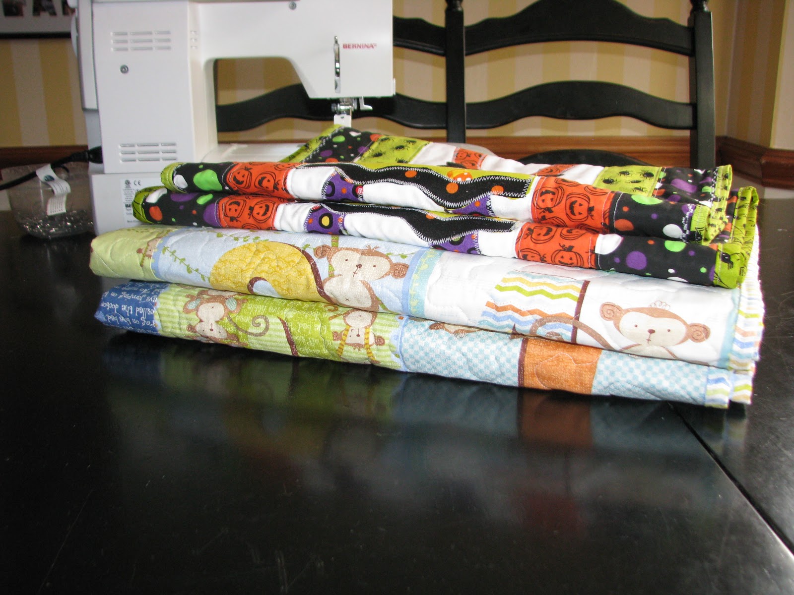 Both baby boy quilts and Halloween runner's are complete and ready to move to the gift closet. Double Ahhh
