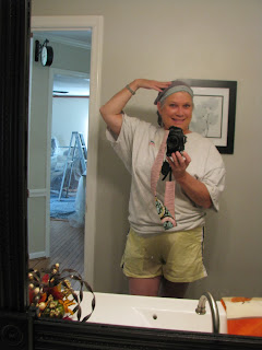 This family room project needs to stay on budget, seeing as how I don't have a shower cap to cover my silver locks and I refuse to spend money on one, I am using underwear that hubby won't wear. My man is married to his whitie tighties, he won't have anything to do with the nice pack of color undies I bought him.